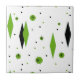 Este los diamantes verdes retros adaptables y la baldosa cerámica de Starbursts es una nueva toma en un estilo del vintage. Ofrece starbursts kitschy, negros en lunares verdes, formas del diamante geométrico, verde y negro del cerco. Modifique el color de fondo para requisitos particulares en este producto moderno de los mediados de siglo si usted está sintiendo atrevido, o déjele el blanco si está sometido es más su estilo. Usted está seguro de disfrutar de nuestro homenaje a los años 50. Compre esto hoy y sea el gato más fresco en su bloque.