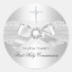 Primer Pegatina de la Santa Comunión. Elegante arco de diamante plateado y encaje blanco bonito. Por favor, tenga en cuenta que todas las imágenes planas no tienen arcos ni joyas reales.