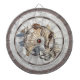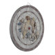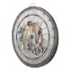 Seashells in a circular arrangement with spiral shells and clam shells completing the circle on the sand