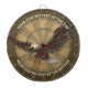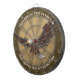 Ilustración de águila volando atacando con alas abiertas. Fondo beige desgastado. Dos áreas de texto personalizadas.
