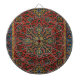Alfombra persa - Patrón de arte árabe, Emile Prisses d'Avennes, impreso en el libro La Decoration Arabe. (1885). Esta imagen es una reproducción fotográfica basada en una antigua alfombra persa ricamente detallada con un diseño intrincado. Presenta un patrón simétrico y audaz en el centro, utilizando motivos geométricos y florales. Los colores dominantes son el rojo intenso con acentos de oro, azul y verde. El borde de la alfombra contiene un patrón floral repetido, lo que añade una capa adicional de detalle ornamentado. La artesanía es evidente en los complejos elementos de diseño entrelazados y los colores vibrantes.