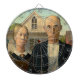 Esta es una pizarra de tamaño de regulación con una representación de la obra de arte gótica estadounidense en ella.