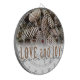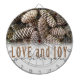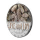 Los festivos y rústicos conos de pino acentúan este diseño clásico y elegante que desea las vacaciones Amor y Alegría.