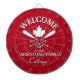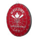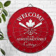 Super divertido "bienvenidos a la casa de campo del lago" tablero de dardos personalizado con un patriótico diseño de hojas de arce canadiense con remos cruzados y un ancla. Cambie el nombre, el año y el nombre de su escapada de vacaciones (casa de playa, cabaña, casa de verano, etc.) para hacer de este un regalo maravilloso y único.