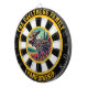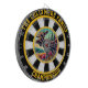 Este diseño circular muestra un majestuoso alce en un bosque con un audaz foco de atención.