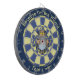 Cartel azul con texto personalizado. Viejo mago con capa azul mirando la bola mágica de cristal.