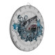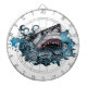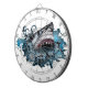 Diseño original de un tiburón saliendo del agua. Creado con lápices, lapiceros y coloreado en Photoshop.