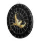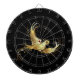 Pájaro brillante, dorado, pintado artistalmente sobre un fondo negro