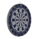 Un diseño clásico de diana con triángulos alternos de azul marino y lámina de falso plateado.