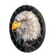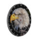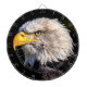 Este diseño presenta una imagen de la cabeza de un águila calva. Es un hermoso pájaro de presa que se perfila en los árboles y en las gargantas cuando no se esparce por el aire en busca de su próxima comida. El águila calva es también la ave nacional de los Estados Unidos, porque el animal es nativo de la región. Se puede ver una representación del pájaro en el Gran Sello de los Estados Unidos, donde el animal está agarrando con sus talones trece flechas y una rama de olivo con trece hojas.