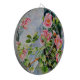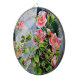 Románticos rosas de color rojo y rosa frente a una valla blanca de piquete, brillando al sol de la noche. inspiración de un viaje a la isla de Mackinac Michigan. pintura original de H Cooper.