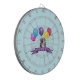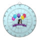 Una linda foto del perro de la montaña de Bernese deseando "Feliz Cumpleaños" y globos en segundo plano