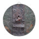 Imagen de un bloqueo de hierro antiguo con llave en el agujero de la llave. La cerradura está sentada sobre un baúl antiguo de madera verde.