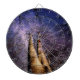 Este diseño presenta una hermosa imagen de dos grandes árboles que suben al cielo, rodeados por otros árboles en un bosque. La escena se organiza por la noche, cuando todo parece particularmente mágico y encantador. Hay una bandada de pájaros volando. El cielo está formado por una bonita mezcla de morado y azul, salpicado de brillantes estrellas blancas.