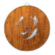 Una escena de tiburones plateados y buceadores en un decorado de fondo de madera de teca. Un auténtico regalo náutico moderno.