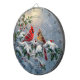 Un par de cardenales rojos norteños se posan en una rama sagrada cubierta de bayas rojas y nieve.