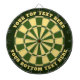 tablero de dardos verde y amarillo crema con dos áreas de texto personalizados. Puede cambiar fácilmente cada color haciendo clic en el botón personalizar.