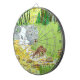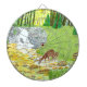 Un tablero de dardos con una hermosa escena forestal que incluye una cierva y un cervatillo bebiendo de un arroyo cerca de una cascada. Obra original de W.B.