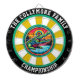 Un impresionante cocodrilo de colores vivos en un lago, resaltado con un overlay objetivo