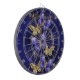 Composición de lujosas mariposas de zafiro y joyas de oro sobre fondo texturizado azul.