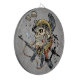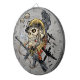 Ésta es una imagen verdaderamente traviesa de un cráneo o de un esqueleto que fuma un cigarro con su casco militar encendido mientras que los aeroplanos están cayendo paracaidistas y bombas alrededor de él. Recomendado para los veteranos militares. Arte por el último Al Río.