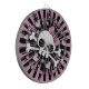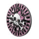 Calavera suave y huesos cruzados rodeados de corazones y estrellas con mucho rosado. ¡A las damas les encantará este cráneo de niñita!