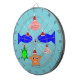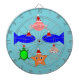 Este impresionante dardo tiene una colección de criaturas marinas con sombreros de santa. Los animales marinos incluyen un par de peces azules, un pequeño cangrejo rosa de aspecto descarado, una estrella de mar amarilla, una medusa brillante y una linda tortuga verde.