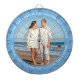 Custom Photo Dartboard template with personalized text and MANCHESTER CITY BLUE 6CADDF round photo framing surround (other color surrounds available in store). Your face on a dartboard. One click personalize upper and lower text plus replace image, or full customization via Edit Screen. Regulation size with metal frame and 6 brass darts (Stars and Stripes + Union Jack flights). A fun gift for a darts player.