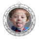 Custom Photo Dartboard template with personalized text and WHITE round photo framing surround (other color surrounds available in store). Your face on a dartboard. One click personalize upper and lower text plus replace image, or full customization via Edit Screen. Regulation size with metal frame and 6 brass darts (Stars and Stripes + Union Jack flights). A fun gift for a darts player.