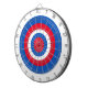 Anillos en dos conjuntos de Blanco, Azul y rojo crecen concéntricamente más pequeños en grosor a medida que se acercan al centro.