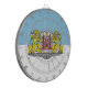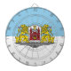 Dardo con diseño con bandera de Riga, capital de Letonia; bandera blanca y azul con escudos de armas con dos leones dorados sosteniendo un escudo en el centro