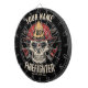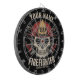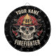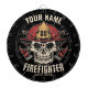 Diseño personalizado del Departamento de Bomberos de Quirero del Cráneo de Bomberos - Skeleton con casco rojo y doble hacha. Personalizar con su nombre, número de estación/departamento y ubicación.