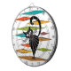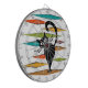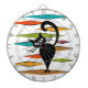 Ilustracion colorido abstracto de estilo Mid Century con gato negro y rombos coloridos decoración sobre fondo blanco