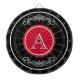 Elegante diseño de monograma en círculos negros y rojos con decoración floral