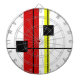 Diseño geométrico abstracto de arte moderno con líneas negras, rojas, amarillas y cuadrados negros sobre fondo blanco