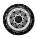 Eleva tu sala de juegos con este intrigante tablero. El tablero presenta un intrincado patrón geométrico en blanco sobre negro, con líneas curvadas que crean un diseño detallado de líneas de arte. El efecto es como una alfombra de encaje crochet o una flor abstracta bellamente simétrica. Personalice con su nombre y el año para un toque de acabado individual.