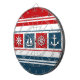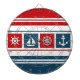 Diseño náutico con decoración de velero, ancla, brújula y rueda de vela sobre fondo a rayas