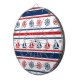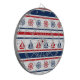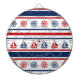Diseño náutico con velero y decoración de brújula sobre fondo rayado rojo, azul y blanco