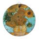 Este diseño presenta un cuadro del pintor holandés post-impresionista Vincent van Gogh (1853-1890). Van Gogh pintó una famosa serie de fotos que retrataban girasoles. Primero se inspiró en las flores amarillas que vio crecer en los jardines de Montmartre, en la capital francesa de París. Sin embargo, esta versión fue pintada en Arles, en el sur de Francia. Las flores son luminosas y están en plena floración. Por esa razón, los girasoles de van Gogh pueden ser vistos como símbolos de la vida, la alegría, la amistad y la esperanza. El título francés de esta pintura es "Tournesols" [Sunflowers], y se produjo originalmente entre 1888 y 1889. La obra es de gran importancia en la historia del arte.