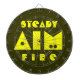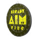 Gracioso tablero para dardos de pub en la cueva masculina. Tonos de camuflaje marrón claro con verde oliva claro para las palabras. Un fondo verde oliva más oscuro. INCENDIO CONSTANTE en un texto enorme con agujeros en las letras. Puede cambiar los colores del texto o del fondo, pero estos colores atraerán la atención. De Su Medicina Wolf