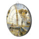 Pierre-Auguste Renoir. El Sena en Argenteuil. Bonito paisaje de colores cálidos. Hay un yate con una vela blanca a orillas del río. Los barcos navegan a lo largo del río. Cielo azul pálido con nubes. Reproducción de obras famosas de imágenes artísticas de dominio público.