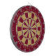 Un diseño de tablero clásico con triángulos de Relieve metalizado burdeos y oro falso. Arriba y abajo están el nombre y un mensaje como texto arquido, en mayúsculas de oro.