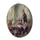 Este diseño presenta una pintura que muestra una escena de la historia estadounidense. Muestra a John Adams, Thomas Jefferson y Benjamin Franklin mientras trabajan en la Declaración de Independencia. Se ha presentado papel al suelo, lo que sugiere que el documento se ha trabajado arduamente y se ha reformulado. John Adams era un representante de Massachusetts, que se convirtió en el segundo presidente de EEUU. Thomas Jefferson era un representante de Virginia, que se convirtió en el tercer presidente de Estados Unidos. Benjamin Franklin era un representante de Pennsylvania, conocido como uno de los más importantes intelectuales de los Padres Fundadores. La Declaración de Independencia fue presentada al Congreso el 4 de julio de 1776. Desde entonces, el Día de la Independencia se ha celebrado en esta fecha cada año.