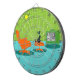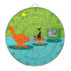 Se dice que los perros tienen propietarios y que los gatos tienen personal. ¡El felino en este Consejo de Kitty Dart de la Era del Espacio Retro no pudo estar más de acuerdo! El estilo de los años 60, de diseño artístico minimalista, cuenta con un elegante gato negro en una sala de estar moderna de mediados de siglo. La sofisticada sala cuenta con una pared de piedra verde. La moqueta es aqua con sombras verde azuladas. El mobiliario de la habitación incluye una luz amarilla y sputnik, una tumbona naranja con una banqueta a juego y un televisor verde con orejas de conejo. El afortunado gato negro se puede ver encaramado en el taburete delante del televisor. ¡Su programa favorito está en marcha! En la pantalla de televisión podemos ver a una familia de televisión clásica en blanco y negro resolviendo todos los problemas de la vida en un programa de media hora. Este diseño es perfecto, si lo decimos nosotros mismos.