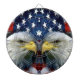 Dos águilas sobre el tablero de dardos de la bandera estadounidense.