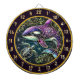 Convierta su cueva o pabellón de pescadores en un refugio encantador con este arte mural de orcas y tortugas inspirado en la fantasía. La majestuosa orca, adornada con sorprendentes patrones de morado, oro y azul, ocupa el centro del escenario en este diseño. Junto a ella, una tortuga muy bien cuidada aporta un toque relajante a las obras de arte bajo el agua. Esta pieza, encajada en un marco circular de remolinos dorados y piedras preciosas, irradia elegancia rústica y energía creativa. Sus brillantes elementos celestes lo convierten en una adición única a cualquier espacio recreativo, ya sea una sala de juegos o un lodge. Ideal para los aficionados a la vida marina o a los amantes del aire libre, esta obra de arte añade personalidad y encanto a cualquier lugar que se muestre. Los colores vivos y la artesanía minuciosa aseguran que sea admirada por todos los que la ven. Trae la belleza del océano y la emoción de la fantasía en tu espacio con esta decoración única de orcas y tortugas.