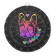 Kleine hübsche französische Bulldogge mit vielen bunten Herzen als Halsband. Die modernen neonfarben leuchten wunderschön. Toller Hundekopf mit treuen Ausdruck.
