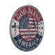 Patronato fiesta Patriótico 4 de Julio personalizado con el apellido y inicial. Presenta un rústico diseño de la bandera de los Estados Unidos con una cruz religiosa, y la cita "Dios bendiga a América".