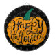 Tipografía estilizada Feliz Halloween tallado en el dibujo de calabaza en estilo plano