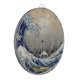 "La Gran Ola frente a Kanagawa", también conocida como "Bajo la ola frente a Kanagawa", es una cautivadora impresión en grabado en madera del renombrado artista japonés Katsushika Hokusai. Creada alrededor de 1831, es parte de una serie titulada "Treinta y seis vistas del Monte Fuji". La obra de arte representa una escena de inmenso poder y belleza contrastante. Una ola colosal, su cresta espumosa y curvada hacia adentro, amenaza con engullir tres pequeñas barcas en un mar agitado. En el fondo, el Monte Fuji, un símbolo icónico de Japón, se mantiene tranquilo y majestuoso, empequeñecido por la inmensidad de la ola. --- La maestría de Hokusai en la composición es evidente en la forma en que utiliza la perspectiva. La ola toma el centro del escenario, su forma dinámica llena el primer plano. Las cr